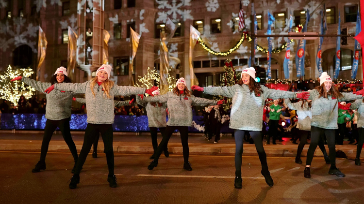 More than one million lights are placed on 200 trees along the Magnificent Mile. They are on both sides of the street to light up the whole area. There is also a fireworks display that lights up the sky.
