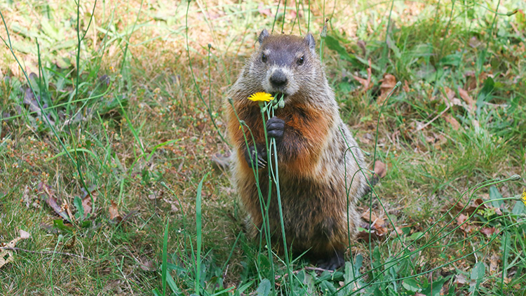 Whether you call it a groundhog, a woodchuck, or a whistle-pig, groundhogs live throughout the eastern United States and Canada. You may have seen one along the edge of a field or even in a garden! Groundhogs dig burrows (a hole in the ground that animals live in) that they use all year to raise young and sleep.